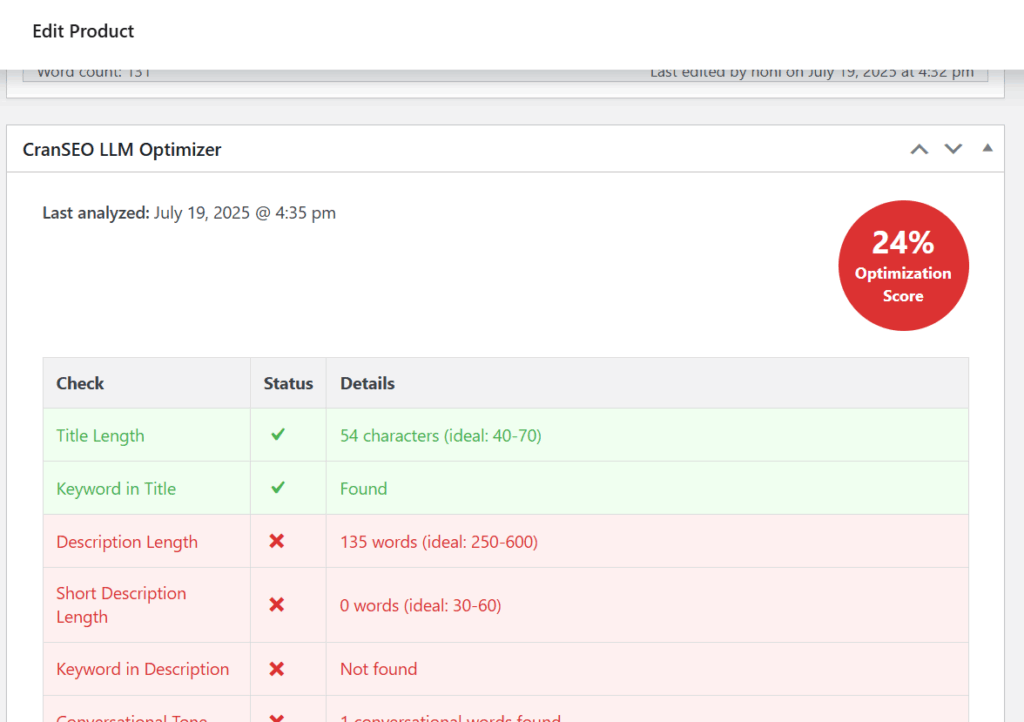 With built-in tools for LLM scoring, AI SEO recommendations, auto-generated metadata, and WooCommerce support, CranSEO is a powerful Yoast alternative for 2025 and beyond.