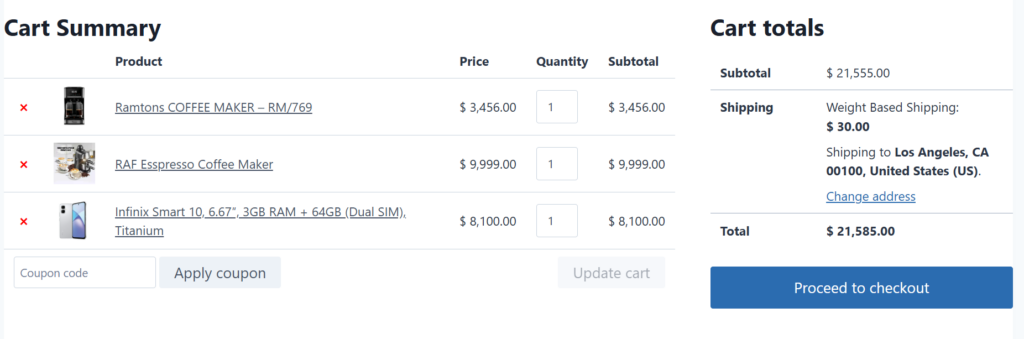 The plugin automatically calculates the Total Cart Weight or the Sum of Individual Item Costs at checkout and applies the correct fee. It works with your existing WooCommerce Shipping Zones, so you can still charge different rates for international vs. domestic customers.